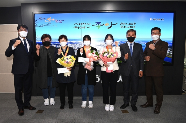 이날 격려 자리에는 김상호 시장과 한종수 문화체육과장, 대회 입상 선수들과 김영기 하남시장애인체육회 상임부회장, 이수현 사무과장 등이 참석했다.