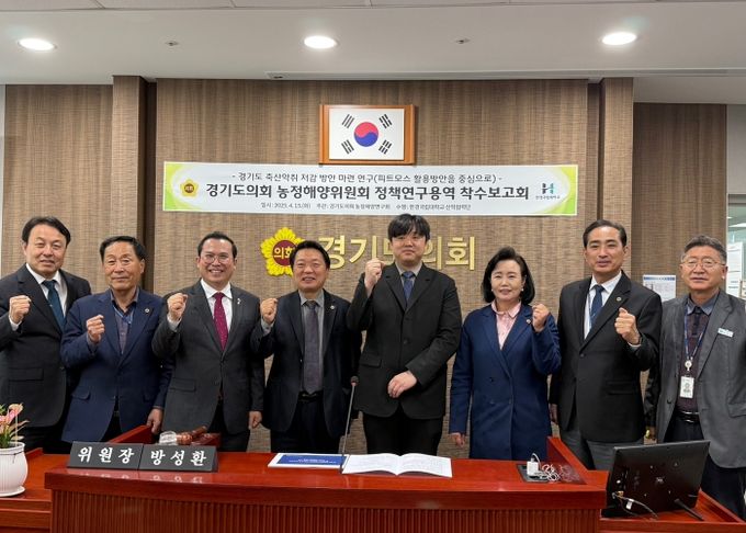 [경기경제신문] 경기도의회 농정해양연구회(회장 방성환, 국민의힘, 성남5)는 15일, 농정해양위원회 회의실에서 '경기도 축산악취 저감 방안 마련 연구(피트모스 지원방안을 중심으로) '를 주제로 착수보고회를 개최했다.