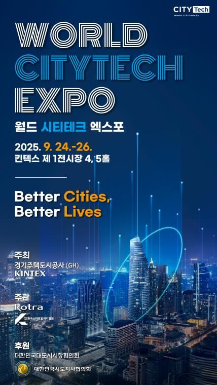 올해 처음 열리는 이번 엑스포는 ‘Better Cities, Better Life’를 슬로건으로, AI 기반 도시 기술 혁신과 서비스를 한눈에 살펴볼 수 있는 국내 최대 규모의 도시 기술 전시회다. 산·학·연·관이 참여하는 다채로운 콘퍼런스도 함께 열려, 첨단 도시기술의 현재와 미래를 공유하고 협력의 장을 마련할 예정이다.