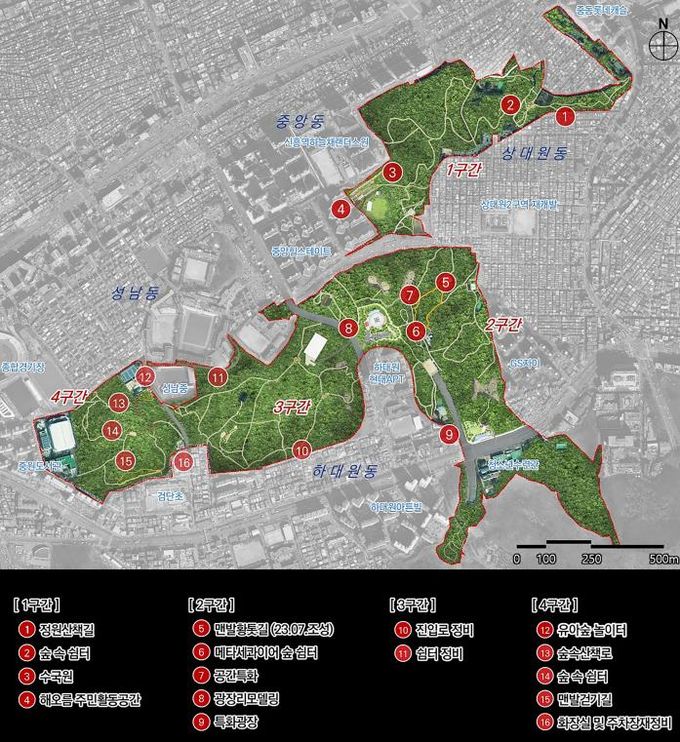시는 대원공원 내 미정비 공원 부지를 중심으로 중앙·하대원·성남동 구간을 1~4구간으로 특화했다.