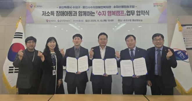 [경기경제신문] 용인특례시 수지구는 13일 용인시수지장애인복지관과 수지신용협동조합과 함께 저소득 장애아동의 복지 향상과 장애 인식 개선을 위한 ‘수지 행복캠프’ 추진 업무협약을 체결했다고 14일 밝혔다.