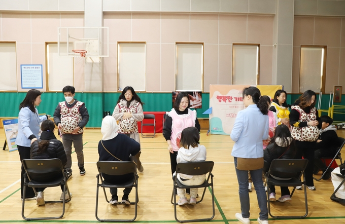 이어 '임신 체험복' 에서는 부모와 자녀가 같이 직접 임신 체험복을 입고 임산부의 몸이 겪는 변화와 고충을 느껴보며, 버스나 지하철에서 자리양보 등의 예절교육 등으로 어머니들의 위대함과 사랑을 간접적으로 경험하는 시간을 가졌다.
