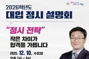 [경기경제신문] 의왕시가 12월 10일 저녁 7시부터 오전커뮤니티센터 5층 강당에서 ‘2026학년도 대입 정시 지원전략 설명회’를 개최한다. 이번 설명회는 대입 수험생과 학부모 200여 명을 대상으로 진행되며, 대입 정시 합격을 위한 실질적인 전략을 제공할 예정이다. 설명회에서는 이투스 진로진학센터 박중서 센터장이 강연자로 나서 2026학년도 수능 결과와 과목별 성적 추이에 따른 입시 결과, 주요 대학별 정시모집 요강 등 다양한 정보를 다룰 예정이다. 특히, 정시모집 가·나·다군 별 합격 지원전략을 제시해 수험생들이 보다 구체적인 계획을 세울 수 있도록 도울 예정이다. 참가 신청은 11월 25일부터 의왕시 통합예약시스템 홈페이지에서 선착순으로 진행되며, 설명회 참석자에게는 2026학년도 정시 지원전략 자료집과 가·나·다군 배치표가 무료로 제공된다. 김은영 평생교육과장은 “지난해와 올해 대입 수시설명회에서 현장반응이 좋고 강사 만족도가 매우 높았던 입시전문가를 재초빙했다”면서 “이번 설명회가 수험생들이 수능 성적을 바탕으로 정확한 합격 전략을 세우는 데 실질적인 도움이 될 것으로 기대한다”고 말했다. 한편, 의왕시는 오는 12월 15일부터 ‘1대1 정시 집중