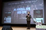 [경기경제신문] 부천시는 지난 19일 부천시청 어울마당에서 부천시 전 직원을 대상으로 조용익 시장의 인사말과 함께 ‘부천 아카데미 플러스(+)’ 세 번째 강연을 열었다. ‘부천 아카데미 플러스(+)’는 부천시가 2025년부터 분기별로 운영 중인 명사 초청 강연 프로그램으로, 공직자가 시정 전반에 대한 통찰과 전문성을 넓히고 미래 변화에 능동적으로 대응할 수 있도록 각 분야 최고 연사를 초청해 진행하고 있다. 이번 강연에는 성균관대학교 공과대학 최재붕 교수를 초청해 ‘AI 사피엔스 시대 생존 전략’을 주제로 진행했으며, 부제는 ‘2025. AI로 뛰어드는 기업들, 나의 미래 준비는?’이다. 최 교수는 ‘AI 사피엔스’, ‘AI 대전환’이라는 키워드를 통해 급변하는 사회 속 인공지능(AI) 시대를 살아가는 시민과 공직자의 생존 전략을 제시했다. 이와 함께 디지털 세계관을 바탕으로 한 상상력과 실력의 결합, AI와 인문학, 경험 디자인이 융합된 팬덤 중심 사회의 변화를 강조하며, 공직자도 자발적인 AI 학습과 전문 역량 강화를 통해 새로운 시대의 리더로 성장해야 한다고 강조했다. 최재붕 교수는 “미래는 기술이 바꾸는 것이 아니라, 기술을 받아들이는 사람의 상상력과