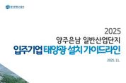 [경기경제신문] 경기주택도시공사(GH)는 27일, 양주은남 일반산업단지를 ‘경기북부 RE100 실현 산업단지’로 조성하기 위한 일환으로, 국내 최초로 산업단지 입주기업 대상 ‘태양광 설치 가이드라인’을 제작했다고 밝혔다. 이번 가이드라인은 GH가 수개월에 걸쳐 양주시, 경기환경에너지진흥원, 입주기업, 발전사업자 등 전문가 자문 및 관계기관 협의를 거쳐 완성한 입주기업 맞춤형 실무 지침서다. 이는 산업단지 단위에서 재생에너지 도입 지원체계를 마련한 국내 첫 사례다. 가이드라인은 다양한 태양광 사업모델 △발전사업 인허가 절차 △지붕 등 구조별 설치 기준 △안전·유지관리 방안 등 입주기업의 RE100 달성을 위한 실무 전 과정을 단계별로 구성해, 태양광 설치가 처음인 기업도 쉽게 이해하고 적용할 수 있도록 체계적으로 정리됐다. 특히, 모든 필지에 대해 태양광 조도 시뮬레이션을 실시, 예상 발전량·설치비·운영비 등을 사전 분석해 입지별 개별사업성까지 안내한 점이 큰 특징이다. 이를 통해 기업이 자발적이고 합리적인 재생에너지 도입 결정을 내릴 수 있도록 실질적인 지원 기반을 제공한다. 이와 함께 GH는 입주기업을 위한 전담 지원센터를 설치·운영해, 상담 및 기술 지원