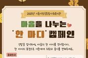 [경기경제신문] 시흥시장곡종합사회복지관은 연말을 맞아 지역사회에 따뜻한 마음을 전하기 위한 ‘마음을 나누는 한 마디’ 캠페인을 진행한다. 이번 캠페인은 이웃을 향한 응원의 말, 위로의 말, 사랑의 말을 담은 짧은 문장을 시민들로부터 응모 받아 서로에게 위로와 용기를 건네는 나눔의 장을 만들기 위해 마련됐다. 참여자는 직접 창작한 문장 또는 문학 작품 속 인용문 중 마음을 전하고 싶은 한 문장을 제출할 수 있다. 응모 기간은 11월 3일부터 11월 14일까지이며, 시흥시민이라면 누구나 참여할 수 있다. 참여 방법은 시흥시장곡종합사회복지관 1층 복도 현장 신청 또는 온라인으로 하면 된다. 선정된 문장은 내부 심사를 거쳐 캘리그래피 작품으로 제작되며, 오는 12월 시흥시장곡종합사회복지관 복도갤러리에서 전시된다. 전시된 작품은 시민들에게 한 해를 따뜻하게 마무리할 수 있는 작은 위로의 메시지로 전달될 전망이다. 시흥시장곡종합사회복지관 관계자는 “짧은 문장이지만, 시민 한 사람 한 사람의 따뜻한 마음이 모여 이웃에게 큰 위로가 될 것”이라며 “많은 시민이 이번 캠페인에 참여해 따뜻한 시흥을 함께 만들어 주시길 바란다”라고 말했다.