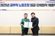[경기경제신문] 시흥시는 지난 11월 26일 시청 다슬방에서 교섭대표 노동조합인 전국민주연합노동조합 시흥지부와 2025년도 공무직 임금ㆍ단체협약을 체결했다. 올해 교섭은 지난 9월 10일 상견례를 시작으로 약 2개월간 총 7차례의 실무교섭을 통해 진행됐으며, 상호 입장을 조율하기 위한 세부 논의를 거쳐 임금 협약과 단체협약 내용이 확정됐다. 임금 및 단체협약에는 ▲2024년 임금 총액 대비 3% 인상 ▲민원 업무 수당 및 위험 근무수당 신설 ▲임금 테이블 통합(사무보조 직군과 영양사ㆍ의료급여 등 전문ㆍ단순 노무 직군을 ‘노무원’으로 통합) ▲경력 인정 기준 신설 ▲휴직 사유 신설 등 다양한 개선 사항이 포함됐다. 이번 합의는 공무직 근로자의 복리 증진과 근무 여건 향상을 위해 노사 양측이 지속적으로 의견을 조율하며 마련한 것으로, 안정적이고 효율적인 근무 환경을 만드는 데 중요한 기반이 될 것으로 기대된다. 김기범 전국민주연합노동조합 시흥지부장은 “같은 시흥시 직원으로서 상생의 자세로 한 방향을 바라볼 수 있도록 협력해 준 시흥시에 감사드린다”라며, “이번 협약을 통해 조합원들이 더 안정적인 근무 환경에서 시정 발전에 기여할 수 있기를 바란다”라고 말했다.