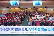 [경기경제신문] ‘2025년 수원시 주민자치 활동평가’에서 율천동 주민자치회가 대상을 차지했다. 수원시가 5일 시청 대강당에서 개최한 ‘2025년 주민자치 활동평가 우수사례 발표회’에서 ‘주민이 직접 가꾼 ‘새빛밤밭’ 이야기’를 발표한 율천동이 대상을 받았다. 금곡동(진짜 주민자치가 나타났다 IN 금곡동), 고등동(기억을 잇고, 사람을 잇고 내일을 잇다), 광교2동(주민과 자연이 함께하는 광교2동 주민자치회)가 최우수상으로 선정됐다. 연무동·권선1동·화서2동·망포2동은 우수상, 정자1동·권선2동·행궁동·매탄2동은 장려상을 받았다. 대상을 받은 율천동은 ▲우리마을 제대로 알기 ▲다양한 주체가 함께 완성하는 율천 ▲환경과 교육으로 미래를 준비하는 마을 등을 주제로 발표했다. 이날 발표회에서는 지난 10월 1~22일 구별 자체 평가를 거쳐 우수 동으로 선정된 12개 동(구별 3개 동)이 우수사례를 발표했다. 내·외부 주민자치 분야 전문가가 심사했다. 정량 평가(50%), 발표 점수(50%)를 합산해 순위를 결정했다. 시상금은 대상 220만 원, 최우수상 120만 원, 우수상 80만 원, 장려상 50만 원이다. 이날 발표회에는 이재준 수원특례시장, 주민자치회 위원,