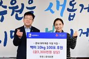 [경기경제신문] 유치회관이 9월 30일 “취약계층 가정에 전달해 달라”며 수원특례시에 백미 100포를 기부했다. 수원시는 4개 구에 25가구씩, 총 100가구에 백미를 배분할 예정이다. 이날 수원시청에서 열린 전달식에는 유은수 유치회관 대표, 김현수 수원시 제1부시장 등이 참석했다. 유은수 대표는 “추석 명절에 작지만 따뜻한 마음이 이웃들에게 전해지길 바란다”며 “나눔 활동을 지속해서 이어가겠다”고 말했다. 김현수 제1부시장은 “어려움을 겪는 이웃을 위해 꾸준히 나눔 활동을 해 주시는 유치회관에 진심으로 감사드린다”며 “따뜻한 마음을 도움이 필요한 가정에 잘 전달하겠다”고 말했다.