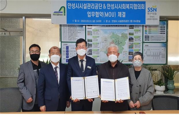 [경기경제신문] 안성시시설관리공단은 지난 11일 안성시 사회복지협의회와 지역사회공헌 및 복지증진을 위한 업무협약을 체결했다고 밝혔다.