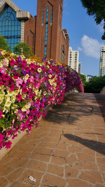이곳에는 여름꽃을 대표하는 웨이브페츄니아, 비덴스, 버베나, 제라늄, 안젤로니아 등이 박스로 장식돼 인근을 오가는 이들의 시선을 자극하고 있다.