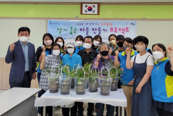 장기화된 코로나19로 지친 이웃들에게 잠깐이나마 힐링하는 시간을 마련해주고 싶 안양시 안양7동 동V터전은 지난 10일 동 행정복지센터 프로그램실에서 관내 저소득층의 소외감 감소와 정서적 안정을 위해 “원예테라피”행사를 진행했다.