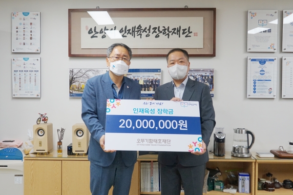 [경기경제신문] 안양시 인재육성재단이 관내 한부모가정 중, 고등학생의 학업 장려를 위해 오뚜기함태호재단으로부터 2천만원의 장학금을 기탁 받았다.