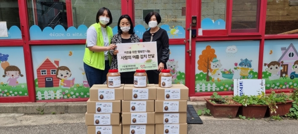 이날 농가주부모임 경기도연합회광명시지회 소속 자원봉자들은 아동들의 균형 있는 영양섭취를 위해 직접 만든 열무김치 5kg 및 오이김치 5kg에 된장을 추가해 여름김치 꾸러미를 제작했다.