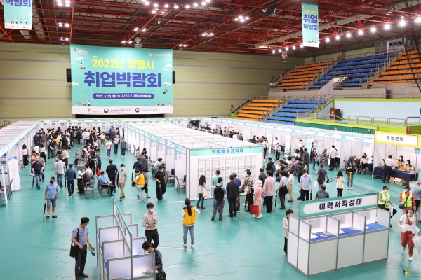 [경기경제신문] 광명시는 23일 오후 2시부터 5시까지 광명시민체육관에서 일상회복을 위한 새로운 출발 ‘2022년 광명시 취업박람회‘를 개최했다.