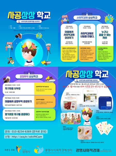 [경기경제신문] 광명시는 오는 7월 22일부터 9월까지 사회적경제와 공정무역을 상상하고 실천하는 시민 학교‘사·공 상상학교’를 운영한다.