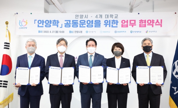 협약에 따라 안양시와 4개 대학은 안양학에 대한 교육콘텐츠 활용 및 개발에 상호 협력하고 학사 운영을 위한 인적 물적자원 교류도 이어 나가기로 했다.