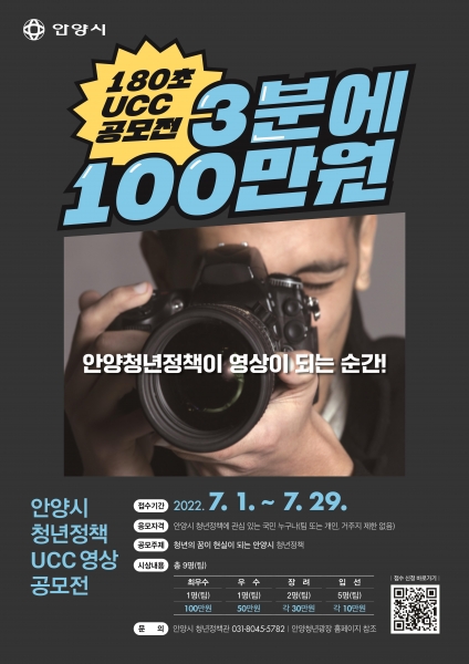 최대호 안양시장은“이번 공모전이 청년이 직면한 현실에 대한 사회적 공감대를 불러일으키고 안양시가 추진하는 다양한 청년정책이 널리 전파되는 계기가 되길 바란다”고 전했다.