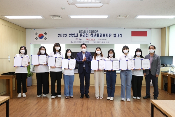[경기경제신문] 안양시는 지난 8일 청사 내 자원봉사센터 사랑뜰에서 ‘2022 안양시 온라인 청년해외봉사단 발대식’을 개최했다고 밝혔다.