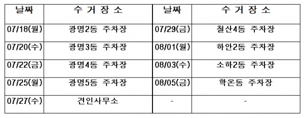 [경기경제신문] 광명시는 쾌적한 도시환경 조성을 위해 18일부터 각 동 행정복지센터를 순회하며 찾아가는 불법광고물 수거보상제를 운영한다.