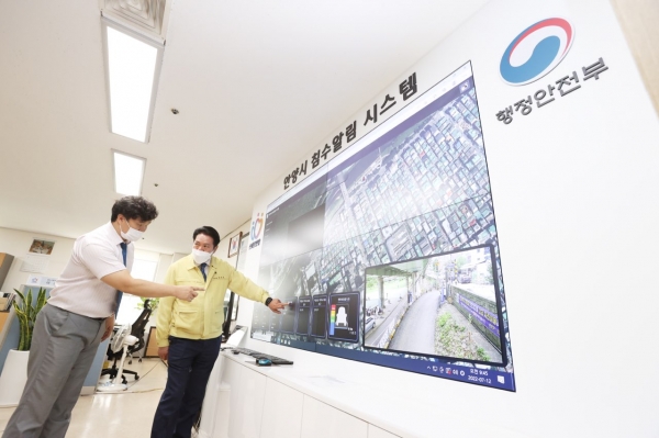 최대호 안양시장은 12일 침수알림시스템 상황실을 방문, 관계공무원의 설명과 함께 직업 시연을 해보고 시민의 소중한 재산을 지키는 것인 만큼, 시스템 관리에도 만전을 기할 것을 주문했다.