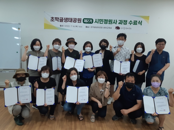 이번 제2기 시민정원사 과정은 시민과 함께 만들어가는 정원문화를 확산시키고자 올해 3월 참여자 20명을 선발해 3월부터 7월까지 15주간의 교육과정을 진행했고 최종 14명의 수료생을 배출했다.
