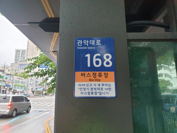 특히‘112·119 신고 시 내 위치는 안양시 번길 번길 버스정류장이다’란 문구가 새겨있어, 상황발생 시 빠르게 활용 가능하다.
