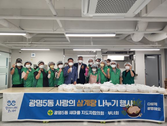 박승국 광명5동장은 “무더운 날씨에도 따뜻한 마음으로 정성껏 삼계탕을 준비하신 새마을지도자협의회·부녀회에 진심으로 감사드린다”며 “앞으로도 다양한 나눔 봉사를 통해 소외되는 이웃 없이 모든 주민들이 건강한 여름을 보낼 수 있도록 보다 세심한 지원을 펼쳐나가겠다”고 전했다.