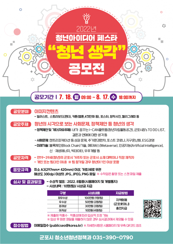 하은호 군포시장은 “우리 사회의 현재와 미래의 주역인 청년들의 다양한 생각을 이미지로 구현한다는 건 색다른 시도가 될 것 같다”며 “청년들의 솔직한 생각과 기발한 아이디어를 공유하는 소중한 기회가 되길 바란다”고 말했다.