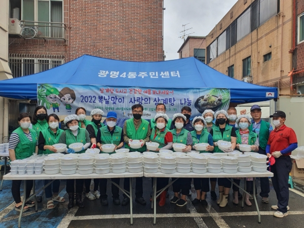 윤경희 광명4동 새마을부녀회 회장은 “매년 복날이 다가오면 관내 어르신들을 초대해 삼계탕을 대접했는데, 올해도 코로나19로 집에서 쉽게 드실 수 있도록 포장해 전달했다”며 “이렇게나마 어르신들께 작은 정성을 전해 어르신들이 무더위를 이겨내시길 바란다”고 말했다.