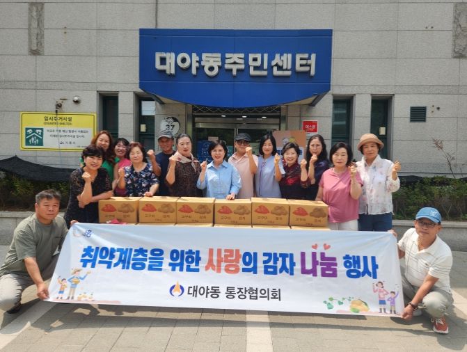 김근선 대야동 마을자치과장은 “무더위 속에서 어려운 이웃을 위한 마음 하나로 감자를 전달해 준 통장협의회 통장들에게 감사하다. 땀 흘려 얻은 값진 수확물인 만큼, 어려운 이웃들에게 잘 전달되도록 하겠다”라고 밝혔다.