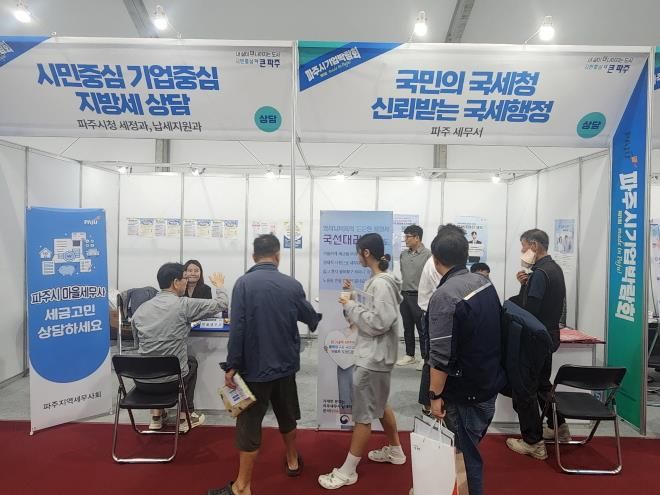 [경기경제신문] 제1회 파주시 기업 박람회가 9월 21~22일 임진각 광장에서 개최된 가운데, 파주시청 지방세 관련 부서(세정과, 납세지원과)와 파주세무서, 파주시 마을세무사들이 협력해 세무 관련 상담을 제공해 기업인들에게 큰 호응을 얻었다.