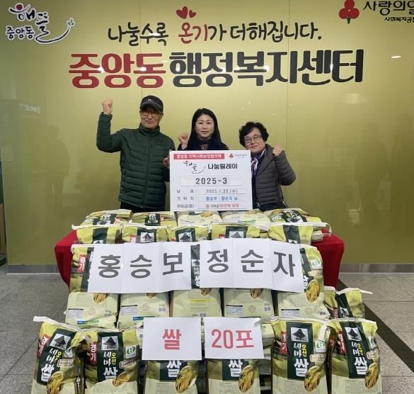 백경희 중앙동장은 “어려운 시기에도 지역사회를 위한 관심과 지원을 아끼지 않는 두 분께 진심 어린 감사를 드리며, 이번 나눔이 더 많은 분들의 기부 릴레이로 이어지는 마중물이 될 수 있기를 기원한다. 후원해 주신 백미는 도움이 필요한 이웃에게 소중히 전달해 기부의 의미를 더할 수 있도록 하겠다”고 말했다.