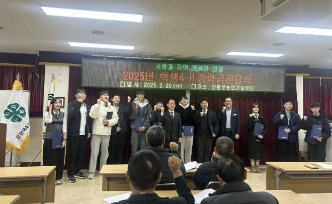 [경기경제신문] 한국 4-H 양평군 본부는 16일 농업기술센터 친환경농업교육관에서 80여 명이 참석한 가운데 2025년 연시총회 및 우수 학생 4-H 회원 장학금 전달식을 개최했다고 밝혔다.