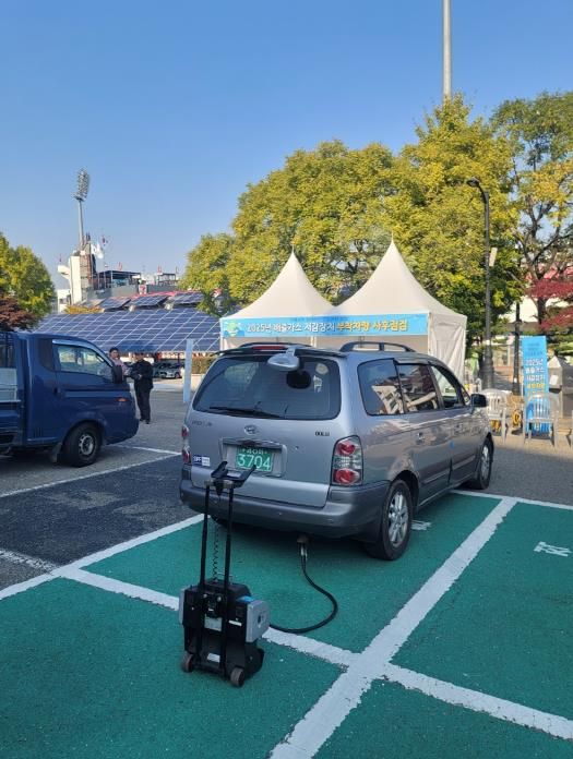 [경기경제신문] 수원특례시는 5일 수원종합운동장 주차장에서 수도권대기환경청, 배출가스저감장치(DPF) 제작사와 함께 관내 DPF 부착 차량을 대상으로 합동점검을 했다.
