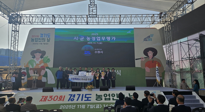 [경기경제신문] 수원특례시(시장 이재준)가 경기도 시군 농정업무평가에서 우수상을 받았다. 시상식은 7일 국립농업박물관 광장에서 열렸다.
