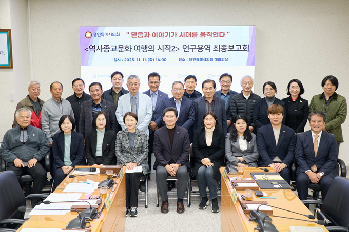 [경기경제신문] 용인특례시의회 의원연구단체 '용인, 역사종교문화 여행의 시작2'(대표 김희영)는 11일 의회 대회의실에서 연구용역 최종보고회를 개최했다.