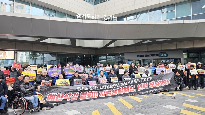 [경기경제신문] 사단법인 경기도장애인자립생활센터총연합회(이하 ‘경자연’ / 대표 송기태)는 11월 11일 화요일 오후 2시, 수원 광교 경기도의회 앞에서 “경기도 장애인자립생활센터 지원 예산 삭감 철회”를 촉구하는 기자회견을 개최했다.
