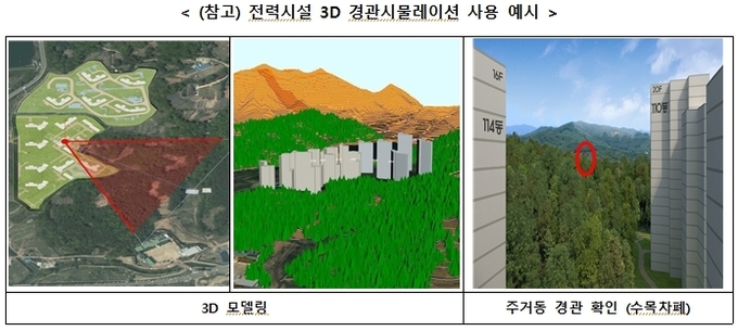 아울러 LH는 ‘26년부터 도시 설계단계부터 주민 시야와 조망권을 고려한 전력 인프라 설계를 가능케 하는 ’전력시설 3D 경관시뮬레이션‘을 도입한다. 해당 시뮬레이션은 입주자가 창문 밖으로 보게 될 전력시설 위치를 입체적으로 구현해 내, 입주민을 고려한 최적의 송전설비 위치와 차폐 방안 등 분석이 가능하다.