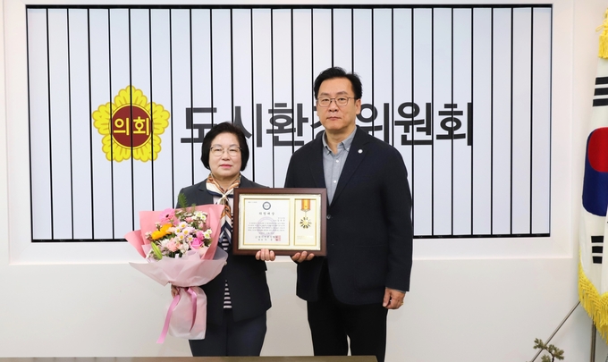 김 의원은 시상식이 열린 지난 10월 22일 해외 출장 관계로 인하여 참석하지 못해 금일 별도로 상을 전수 받게됐다.