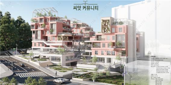 최우수상은 진성원·조예진 팀의 「씨앗 커뮤니티」가 선정됐다. 식물의 생장 방식(끝순, 곁순, 사잇순)을 형상화해 청년주택 내 다양한 가변형 정원 모듈을 구성하고, 모듈 변형을 통한 다채로운 정원길을 형성했다.