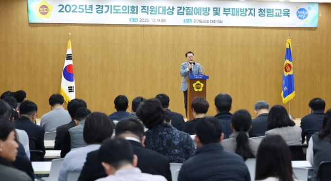 [경기경제신문] 경기도의회는 9일 오전 의회 대회의실에서 전 직원을 대상으로 ‘갑질예방 및 부패방지 청렴교육’을 실시했다.