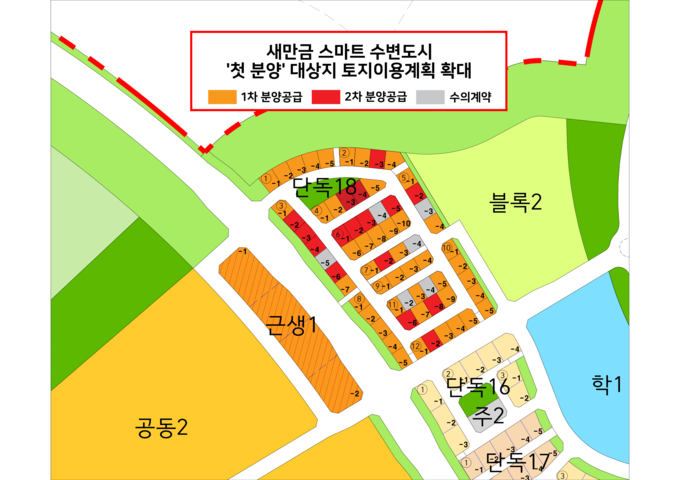 [경기경제신문] 새만금개발공사(사장 나경균)는 ‘새만금 스마트 수변도시 ’2차 분양결과, 1차 공고 시 유찰된 단독주택용지 22개 필지 중 16개 필지(4,974㎡, 추첨공급)가 낙찰되어 ‘첫 분양’ 열기가 이어지고 있다고 밝혔다. 앞서 1차 분양에서는 높은 경쟁률(최고경쟁률 31:1)과 함께 낙찰된 필지가 모두 계약되어 시장의 주목을 받은 바 있다.