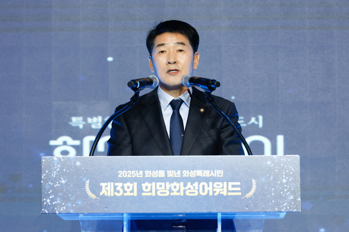 [경기경제신문] 화성특례시의회(의장 배정수)는 17일, 수원과학대학교 SINTEX에서 열린 ‘제3회 희망화성어워드’에 참석해 한 해 동안 지역사회 곳곳에서 헌신과 나눔을 실천해 온 시민들의 뜻깊은 성취를 함께 축하했다.