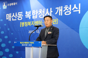 [경기경제신문] 수원 매산동 도시재생뉴딜사업의 핵심인 매산동 행정복지센터 복합개발사업이 마무리됐다. 수원시는 3일 팔달구 매산로2가 40-30 현지에서 매산동 복합청사 개청식을 열었다. 매산동 복합청사는 행정복지센터와 청년 창업지원센터, 행복주택이 한 건물에 있는 수원시 최초의 복합청사다. 연면적 9196㎡, 지하 4층·지상 12층 규모로 1~3층에 매산동 행정복지센터와 주민자치센터·새마을문고·웰컴라운지 등이 있고, 4~5층에는 1인 기업 공간·메이커스페이스(아이디어를 제품으로 만들 수 있는 첨단 장비를 갖춘 창의융합 공간)·창업기업 협업 공간·회의실 등을 갖춘 창업지원센터가 있다. 수원시 청년들의 창업·문화·커뮤니티 활동을 지원하는 공간을 확보해 도시재생 효과를 생활권으로 확장할 것으로 기대된다. 6~12층은 청년, 대학생, 고령자, 주거급여 수급자 등에게 공급하는 행복주택(58호)이다. 입주자는 수원시민을 우선으로 선발했다. 2020년 12월 착공했고, 지난 3월 준공했다. 국도비 41억, 시비 186억, LH 134억 등 총사업비 361억 원이 투입됐다. 매산동 행정복지센터 복합개발사업은 2018년 시작된 ‘매산동 도시재생뉴딜사업’의 세부 사업인 청년