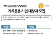 [경기경제신문] 경기도가 2026년 최중증 발달장애인 가족돌봄 사업 대상자 145가구를 12월 2일까지 모집한다. 최중증 발달장애인이란 도전적 행동이 심하고 일상생활에 제약을 지닌 통합돌봄이 필요한 발달장애인이다. 경기도는 돌봄이 필요한 모든 도민들을 대상으로 누구나, 언제나, 어디나 빈틈없는 돌봄을 제공하는 360도 돌봄사업을 하고 있다. 최중증 발달장애인 가족돌봄 사업은 이 가운데 ‘어디나 돌봄’ 사업의 하나로 진행한다. 2024년 4월 처음 가족돌봄 사업을 시행한 이래 매달 210가구에 월 40만 원씩 돌봄포인트를 제공해 생필품 구입부터 여가활동 지원까지 다양한 부분에서 사용하여 장애인 당사자와 가족의 생활안정에 기여하고 있다. 2026년 최중증 발달장애인 가족돌봄 사업의 지원 대상은 경기도에서 거주하는 복지관, 직업재활서비스 등 복지서비스 미이용으로 돌봄사각지대에 놓인 만 18세 이상 발달장애인이다. 선정 시 월 40만 원 가족돌봄포인트를 1년간 지원하고 지속적인 모니터링으로 복지서비스와 대상자를 연계하는 서비스를 제공한다. 2026년 모집인원은 145명으로 전년과 다르게 모집인원을 시군별 배분해 31개 모든 시군에서 공정하게 선정자가 나오도록 반영했