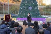 [경기경제신문] 용인특례시는 22일 오후 기흥구 영덕동 산 1-1번지에서 ‘크리스마스트리 점등식’ 행사가 열렸다고 23일 밝혔다. 기흥구기독교연합회가 주관한 이 행사에는 이상일 시장을 비롯해 용인지역 교회 관계자 약 40여명이 참석했다. 이날 점등한 크리스마스트리는 내년 1월까지 희망과 사랑의 빛을 밝혀준다. 이 행사에서 기흥구기독교연합회는 어려운 이웃을 위해 사용해달라며 기흥구에 라면 200박스를 기탁했다. 이상일 시장은 축사를 통해 “오늘 우리가 밝히는 성탄트리가 이곳을 지나는 분들에게 세상의 빛으로 오신 아기 예수님 탄생의 의미를 잘 전달하기를 소망한다”며 “시민들이 성탄절을 맞아 좀 더 넉넉한 마음으로 서로를 더 많이 배려하고 어두운 곳에 사랑을 많이 전달하면 좋겠다”고 말했다.