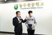 [경기경제신문] 김동연 경기도지사가 16일 동두천중학교를 찾아 노점 할머니께 비상금을 건넨 선행으로 화제가 된 옥현일 군에게 표창을 수여했다. 김 지사는 학교 현관에서 학생회와 함께 ‘함께라서 더 빛나는 우리’ 생명존중 캠페인에 동참하고, 이어 1층 로비에서 옥현일 군에게 표창장을 전달했다. 옥현일 군은 지난 7월 폭염 속에서 노점상 할머니에게 비상금 3만 원을 건네고 콩 한 봉지를 받은 사연이 알려지며 주목받았다. SNS에 게시된 영상은 인근 공방 운영자가 촬영한 것으로, 현일 군이 남모르게 베푼 선행이 담겨 3일 만에 206만 조회수, ‘좋아요’ 약 7만, 댓글 2,500개 이상을 기록했다. 당시 현일 군은 “더운 날씨에 할머니가 물건을 빨리 팔고 쉬셨으면 좋겠다는 마음이었다”고 말해 많은 시민에게 감동을 줬다. 김동연 지사는 이날 인사말을 통해 “옥현일 군이 도운 할머니가 우리의 어머니, 할머니”라며 “수많은 옥현일 군이 동두천중에 있다고 본다. 그것이 사람 사는 세상”이라고 말했다. 이어 “여러분이 그런 따뜻한 마음을 갖길 바란다. 당장은 남을 위한 배려 같지만 길게 봐서 인생에서 나를 스스로 행복하게 하는 길이라는 것을 시간이 한참 지나면 알게 될