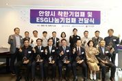 [경기경제신문] 안양시는 16일 오전 11시 30분 관내 음식점에서 지역사회와 이웃을 위해 나눔을 실천한 14개 기업을 대상으로 간담회와 함께 ‘착한기업’ 및 ‘이에스지(ESG)나눔기업’ 감사패 전달식을 가졌다. 나눔 실천에 감사의 마음을 전하고 나눔문화를 활성화하기 위한 이번 행사에는 최대호 안양시장과 14개 기업 대표 및 임원진, 구재관 지역사회보장협의체 민간위원장, 김효진 경기사회복지공동모금회 사무처장 등 20여명이 참석했다. 안양시 착한기업은 2년 이상 지속적으로 연평균 1천만원 이상을 기부한 기업으로, 이날 ▲(주)텔레트론 ▲이알케이솔루션(주) 등 2곳이 착한기업 감사패를 받았다. 이에스지(ESG)나눔기업은 지난해 1천만원 이상을 안양시에 기부한 기업으로, 착한기업으로 선정된 2개 기업과 ▲사회복지법인 백우현진복지재단 ▲(주)코스콤 ▲HL홀딩스 주식회사 ▲㈜쿠스코 ▲㈜대현환경 ▲㈜스크린에이치디코리아 ▲㈜벨루션네트웍스 ▲지에스파워(주) ▲디엔에프솔류션 ▲라온디앤씨(주) ▲평촌교통 ▲인창전자(주) 등 14개 기업이 이에스지(ESG)나눔기업 감사패를 받았다. 최대호 안양시장은 “기부는 단순한 나눔을 넘어 세상을 바꾸는 실천”이라며 “여러분 한 분, 한 분