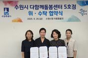 [경기경제신문] 수원특례시는 26일 시청 아동돌봄과 회의실에서 비영리민간단체 ‘꿈자람꿈드리’와 다함께돌봄센터 5호점 위·수탁 계약을 체결했다. 위탁 기간은 2025년 10월 1일부터 2030년 9월 30일까지 5년이다. 수원시 다함께돌봄센터 5호점은 영통구 중부대로448번길 28(원천레이크파크) 내 100㎡ 규모 시설로, 센터장 1명, 돌봄교사 1명, 시간제 돌봄교사 1명이 근무하며 아동들을 돌보고 있다. 수원시는 수탁자 선정 심의위원회를 열어 응모 기관의 운영 능력을 검토했고, 기존 운영법인인 꿈자람꿈드리를 위탁 기관으로 선정했다. 안정적인 운영과 서비스 연속성이 확보될 것으로 기대된다. 다함께돌봄센터는 방과 후 돌봄이 필요한 6세~12세 아동을 대상으로 ▲급·간식 제공 ▲놀이·학습 지도 ▲특별활동 프로그램 운영 등 맞춤형 돌봄서비스를 제공한다. 우선으로 맞벌이 가정 초등 저학년과 다자녀 가구 아동이 이용할 수 있다. 센터는 월~금요일 주 5일 운영하며, 학기 중에는 오전 11시부터 오후 8시까지, 방학 중에는 오전 9시부터 오후 8시까지 문을 연다. 수원시 관계자는 “부모가 안심할 수 있고 아동이 행복하게 지낼 수 있는 돌봄환경을 조성하겠다”고 말했다.